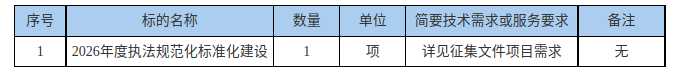 2026年度执法规范化标准化建设招标项目的潜在投标人应在深圳市福田区民田路171号新华保险大厦903获取征集文件,并于2025年12月23日14点30分(北京时间)前递交投标文件。